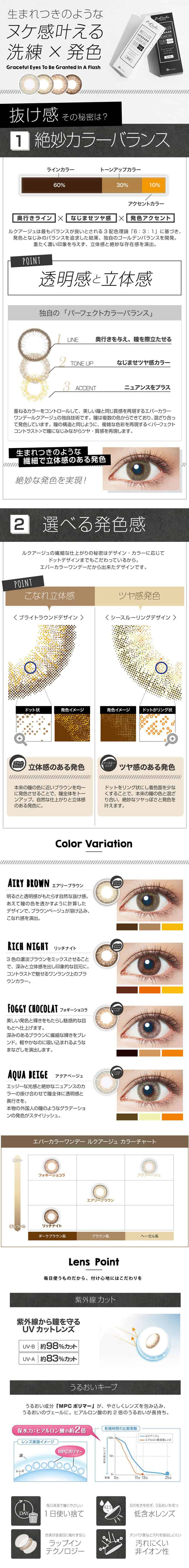 • GLOSS AMBER / WATER QUARTZ / SKINNY HAZEL / MISTY ASH / AIRY BROWN / RICH NIGHT / FOGGY CHOCOLAT / AQUA BEIGE